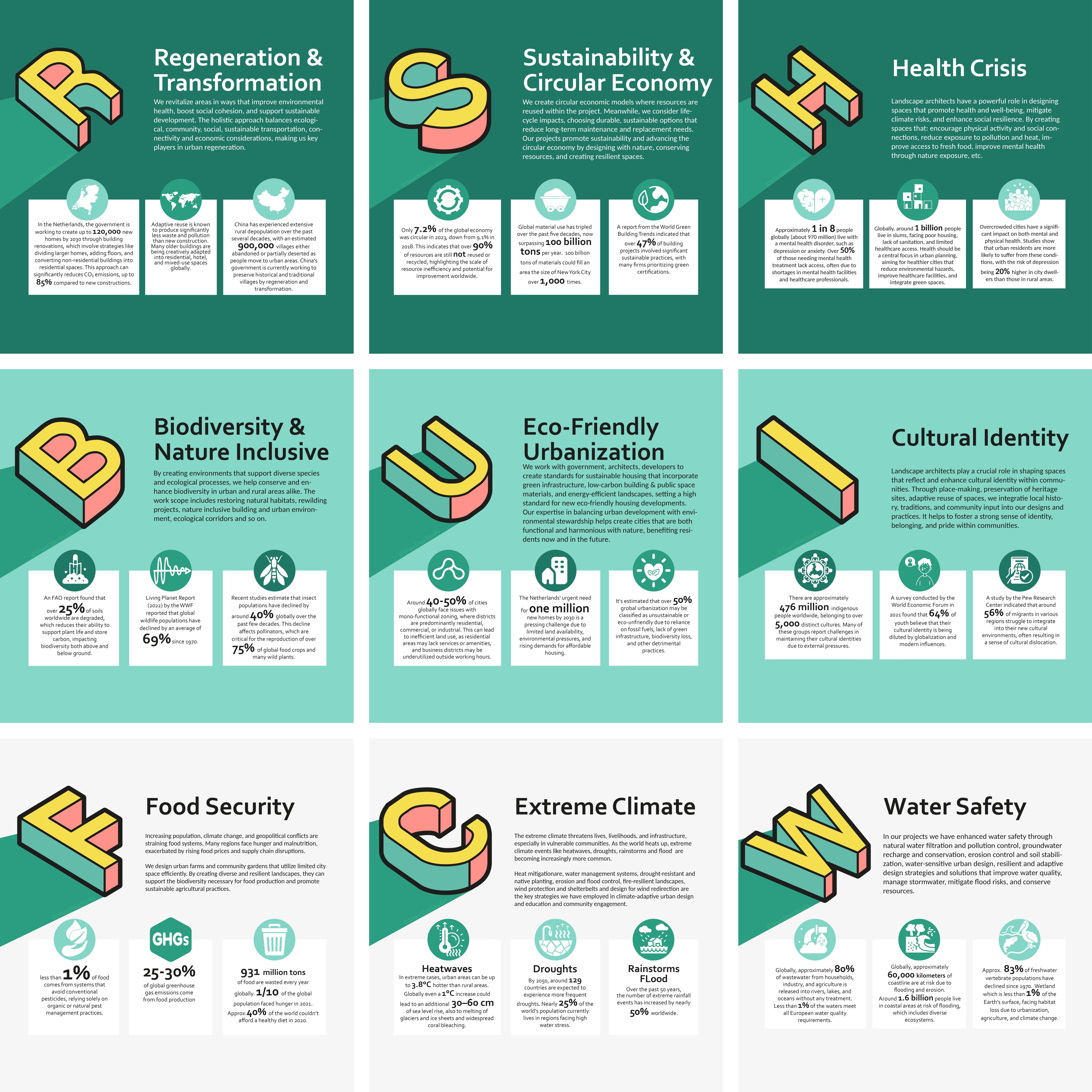 Shan Shao Studio opereert als een ontwerppraktijk van concept tot realisatie die zich richt op het aanpakken van urgente maatschappelijke en ruimtelijke uitdagingen. De studio werkt aan thema’s zoals voedselzekerheid, klimaatadaptatie, waterveiligheid, culturele identiteit, verstedelijking, biodiversiteit, volksgezondheid, duurzaamheid en de circulaire economie, met bijzondere aandacht voor regeneratie en transformatie.